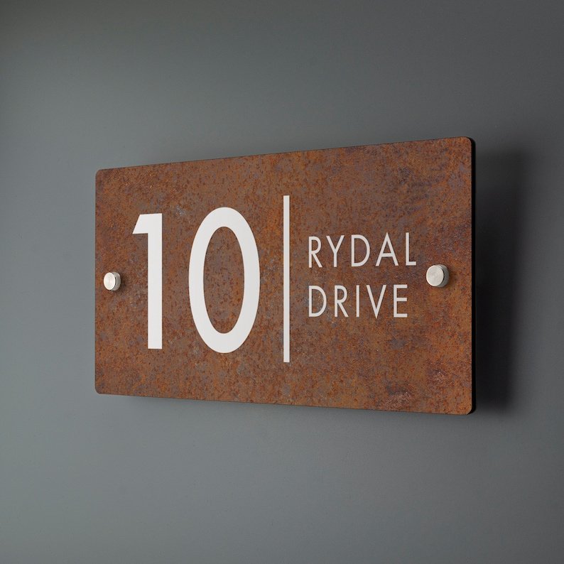 House Number Sign Printed Rust Effect Address Signage