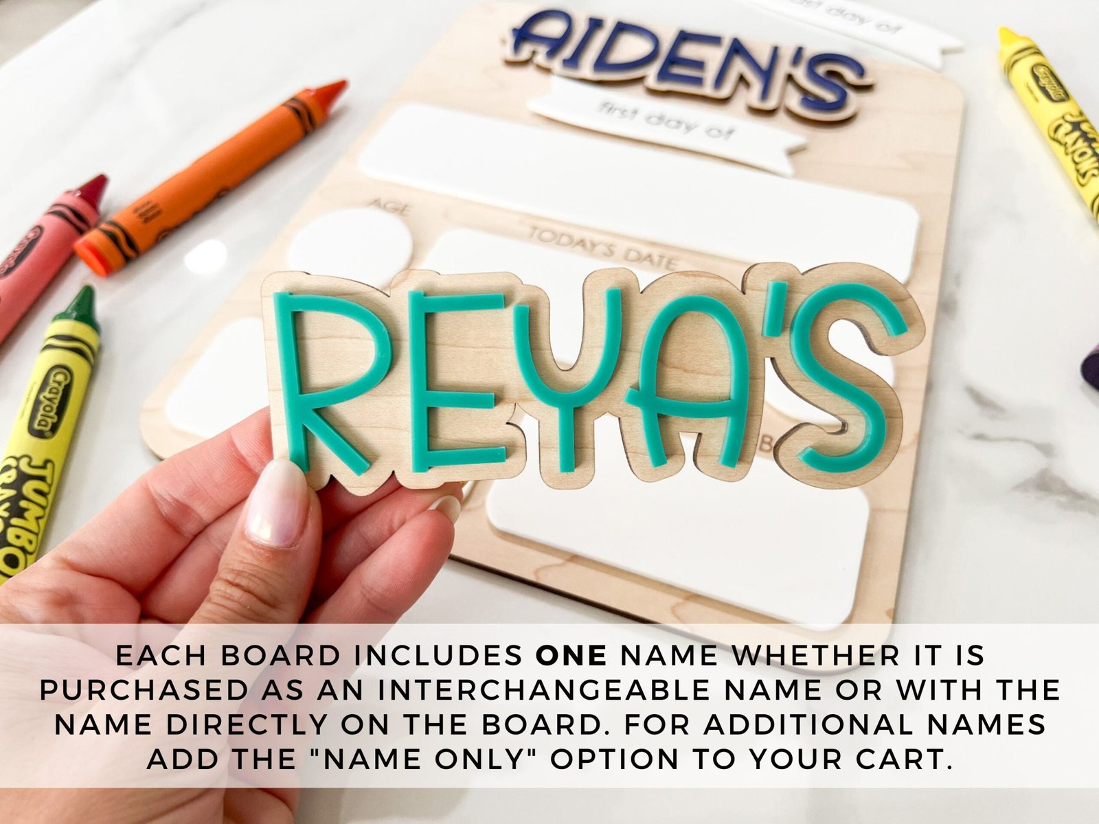 Choose a permanently attached single name or opt for multiple detachable names to accommodate siblings or yearly updates.