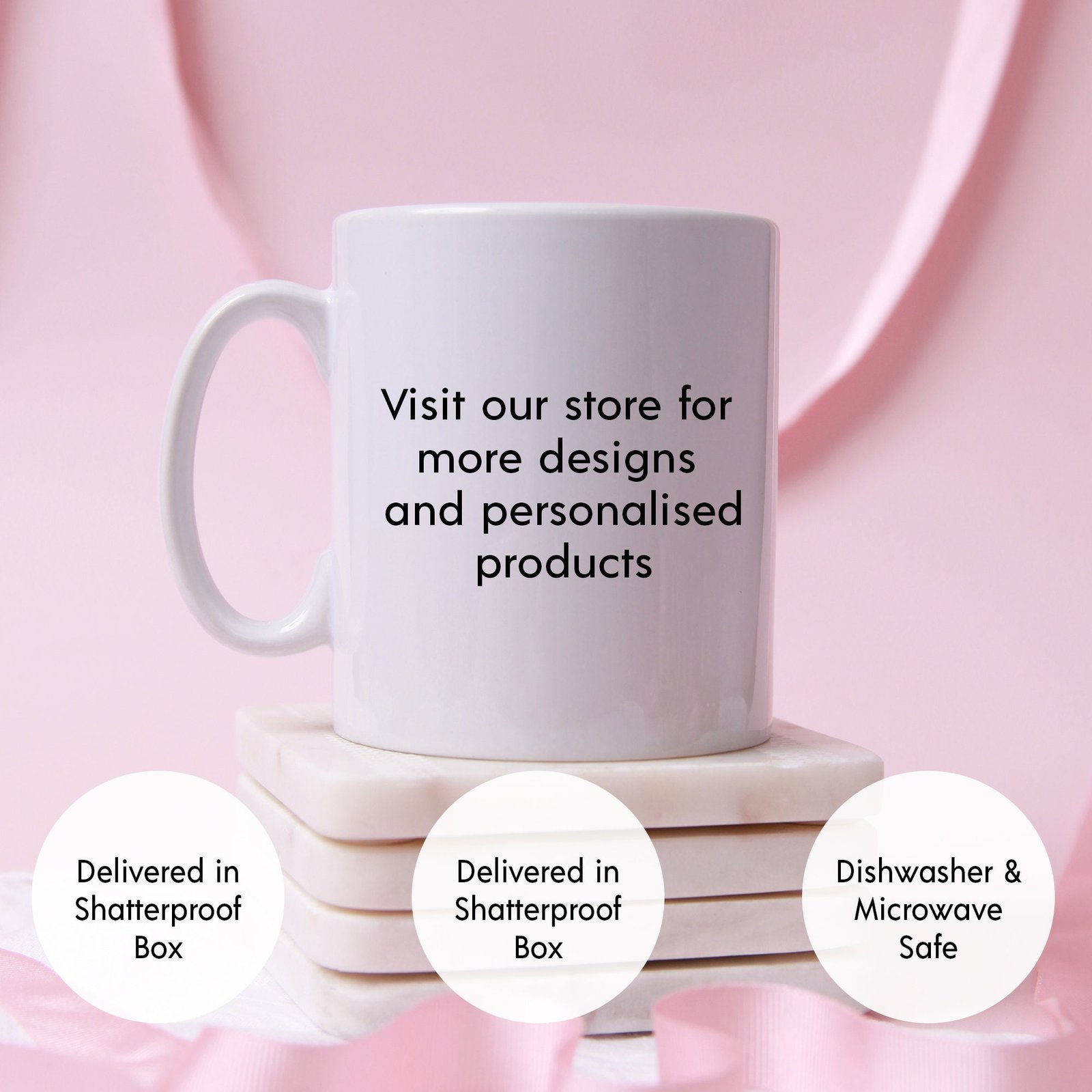 - Mug Style: Classic white, black interior, or two-tone rim mugs